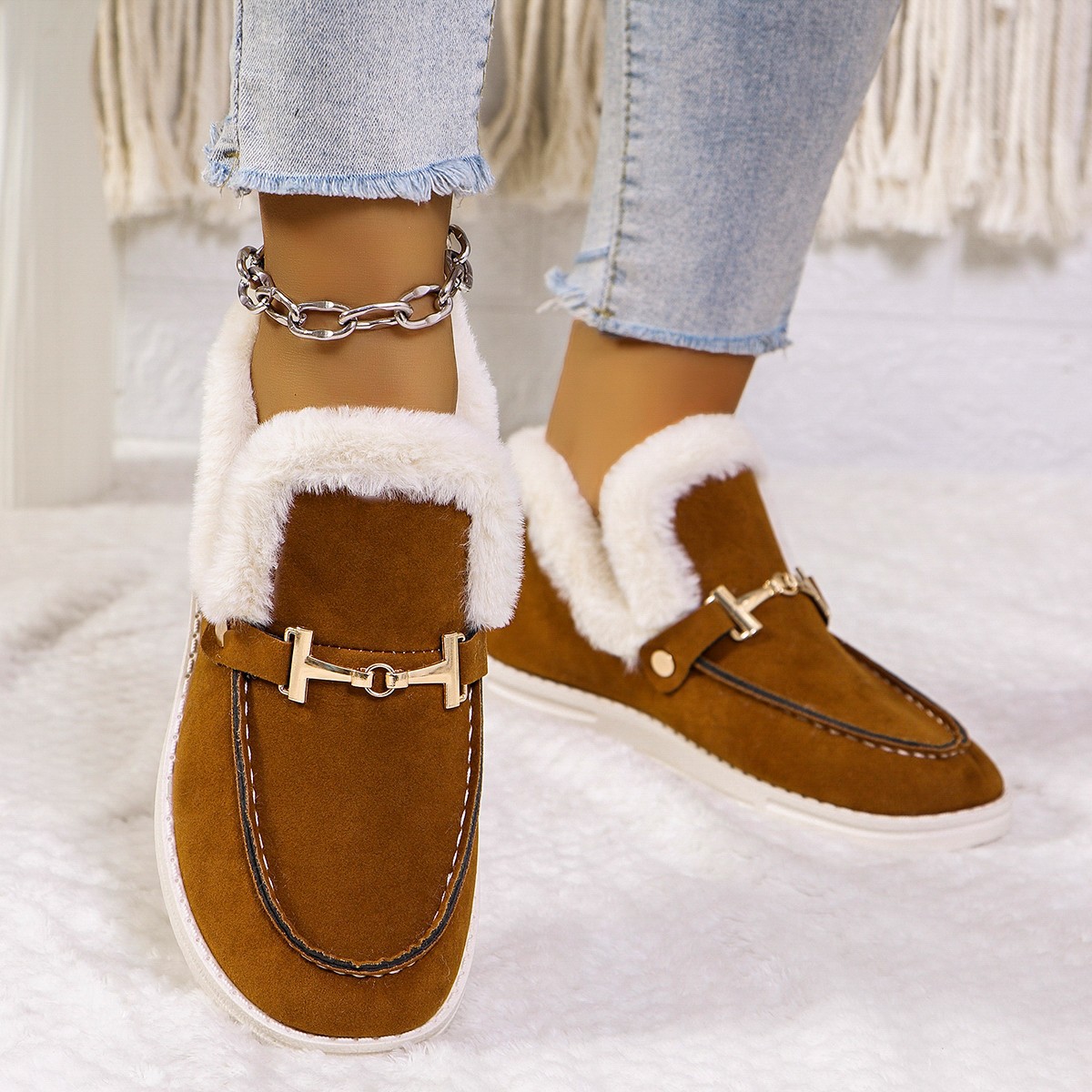 🔥Best Seller-Last Day Sale 60% OFF🔥Fuzzy Detail Winter Lined Snow Boots